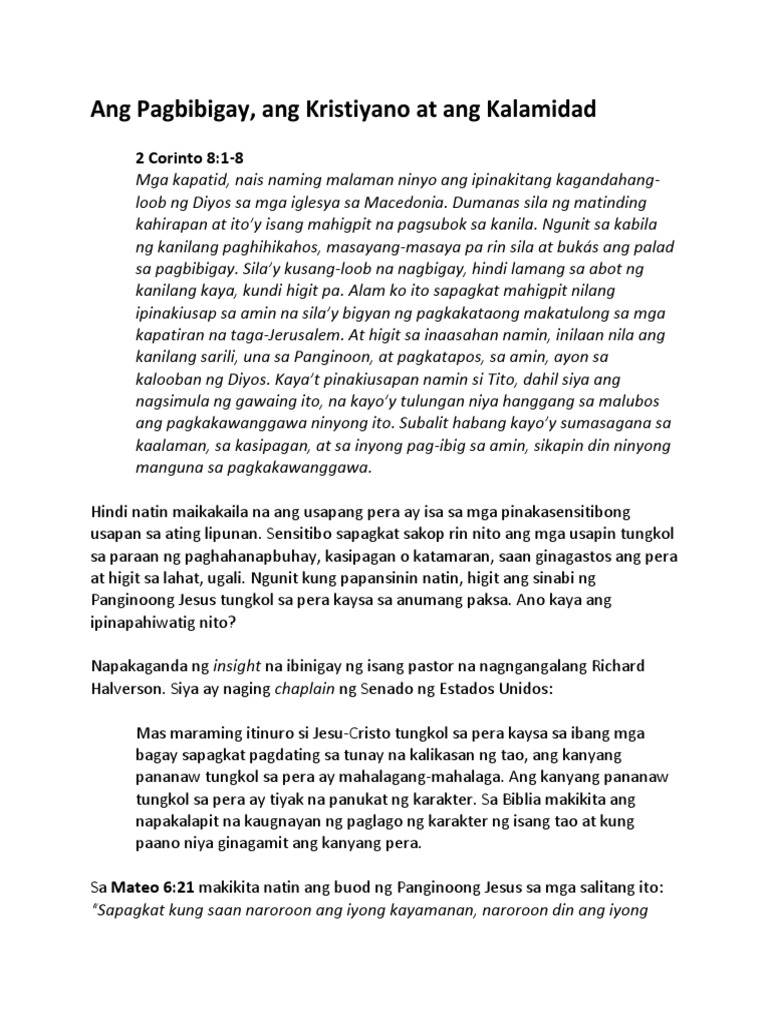 Ang Pagbibigay Ang Kristiyano At Kalamidad