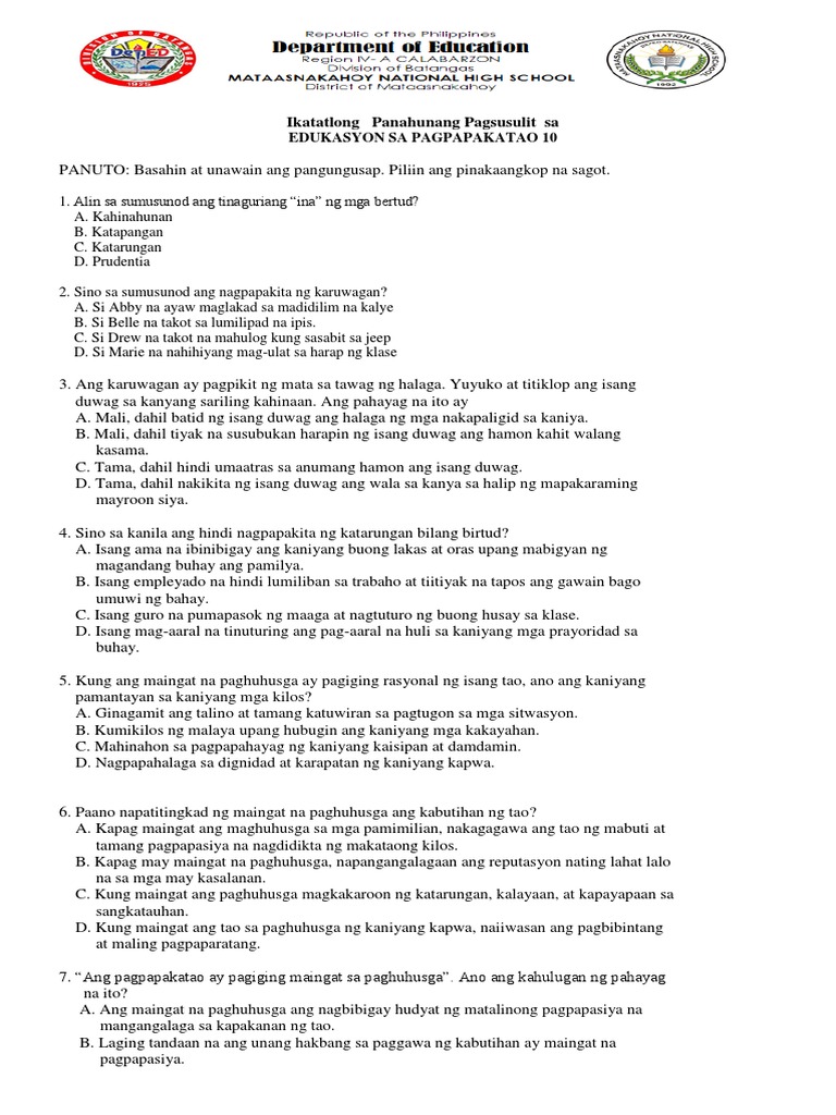 DRAFT March 31 2014 Edukasyon sa Pagpapakatao Baitang 9 Modyul 1 Pahina 4 6. Do you know the correct answer. Sa mundong ito na lalong nagiging kumplikado ang edukasyon ay isa sa pinakamahahalagang makamtan sa buhay pagsulat niya.