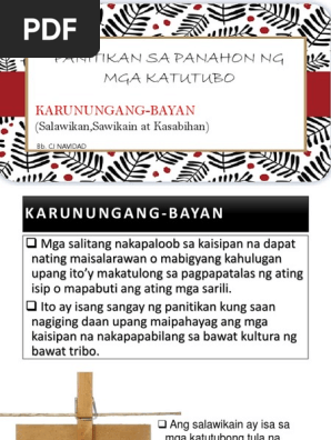 Filipino at mga Katutubong Wika sa Dekolonisasyon ng Pag-iisip ng mga Pilipino Ang tema ng pagdiriwang ng Buwan ng Wika ay pakikiisa ng Komisyon sa Wikang Filipino KWF sa 2021 Quincentennial Commemorations in the Philippines 2021 QCP na nakatuón sa mahahalagang pangyayari sa bansa sa nakalipas na 500 taón partikular na sa Kautusang Tagapagpaganap Blg. Ang bugtong salawikain idyoma kasabihan at palaisipan ay ang mga napapaloob sa kategoryang karunungang bayan. Filipino at mga Katutubong Wika sa Dekolonisasyon ng Pag-iisip ng mga Pilipino Ang tema ng pagdiriwang ng Buwan ng Wika ay pakikiisa ng Komisyon sa Wikang Filipino KWF sa.