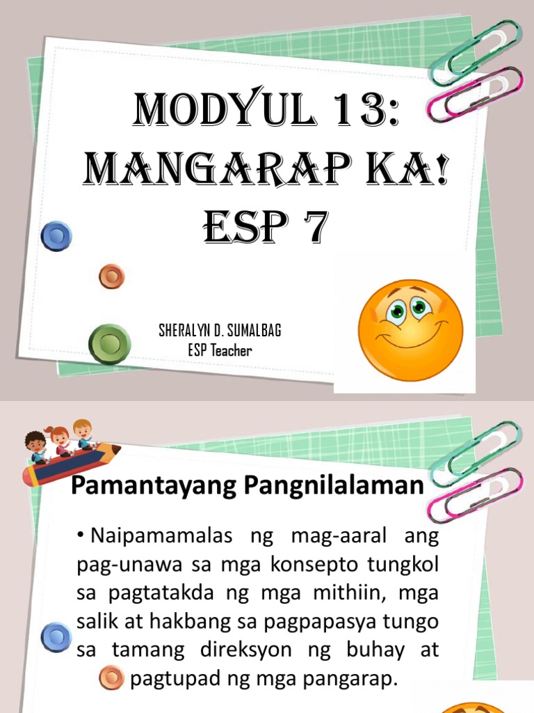 Bakit kailangan ang pagtatakda ng malinaw na mithiin sa pagkamit ng mga pangarap. Bakit mahalaga ang pagtatakda ng mga pangmadalian at pangmatagalang mithiin. Mahalaga ba na ikaw ay may edukasyon para matupad ang iyong mga pangarap.
