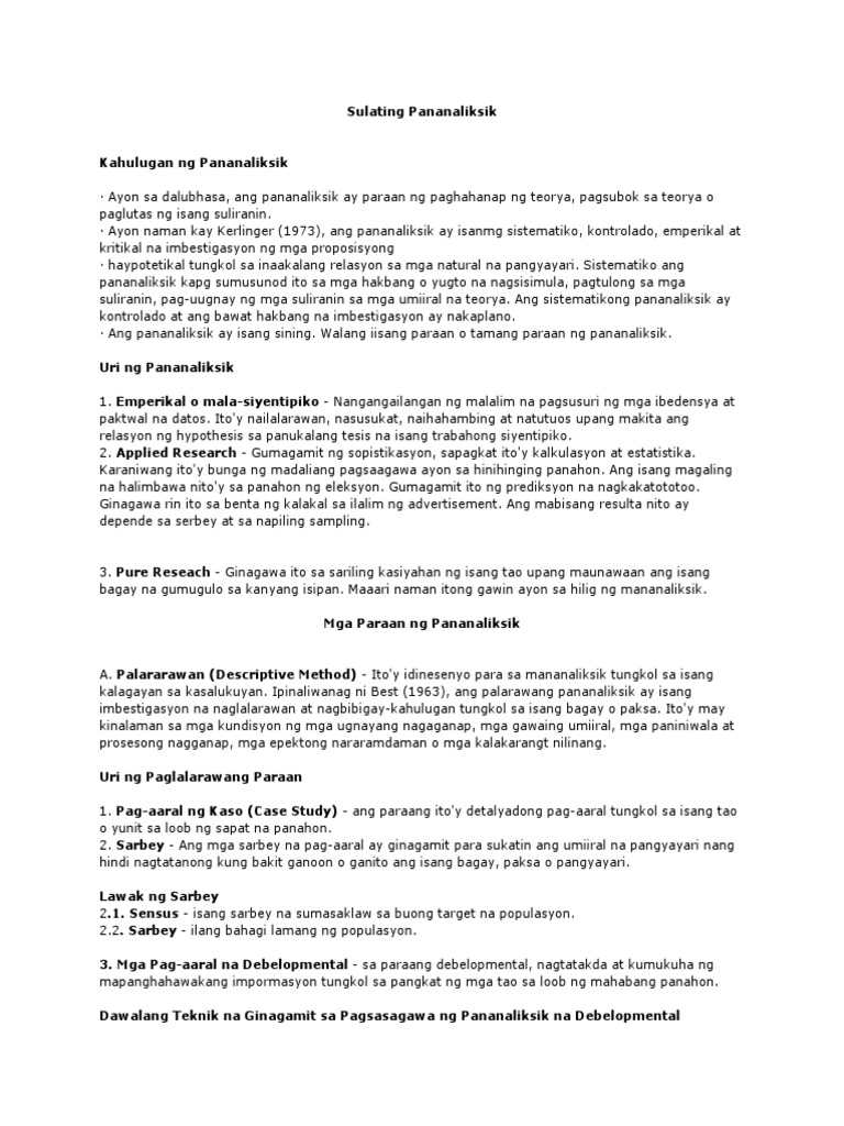 Jul 30 2021 Ang sulating pananaliksik ay ang pagsulat gamit ang sistematikong paraan upang masagot ang mga katanungang siyentipiko. Ang halaga ng Pananaliksik Sa pamamagitan ng pananaliksik lumalawak at lumalalim ang karanasan ng tao hindi lang tungkol sa partikular na paksang pinag-aaralan niyakundi sa lipunang nagsisilbing konteksto ng kaniyang pananaliksik. Nasuya na ang ina sa katatanong ni pinang.