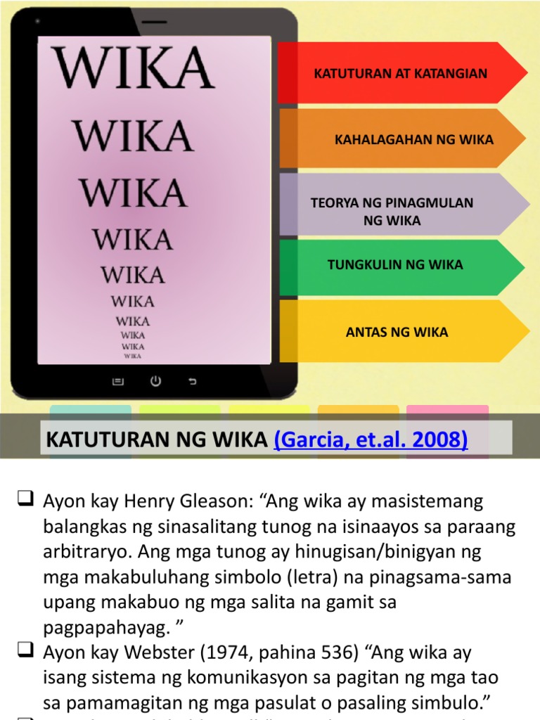 Ang wika ay isang masistemang balangkas dahil ito ay binubuo ng mga makabuluhang tunog fonema na kapag pinagsama-sama sa makabuluhang sikwens ay makalilikha ng mga salita morfema na bumabagay sa iba pang mga salita semantiks upang makabuo ng mga pangungusap. Mahalaga malalaman mo ang 90 ng kung ano ang namamalagi sa ilalim ng iceberg sa ANUMANG pakikipagsapalaran sa lipunan. Samantala ang antas ng wika naman ay ang ibat-ibang paraan ng pagsasalita ng isang wika.